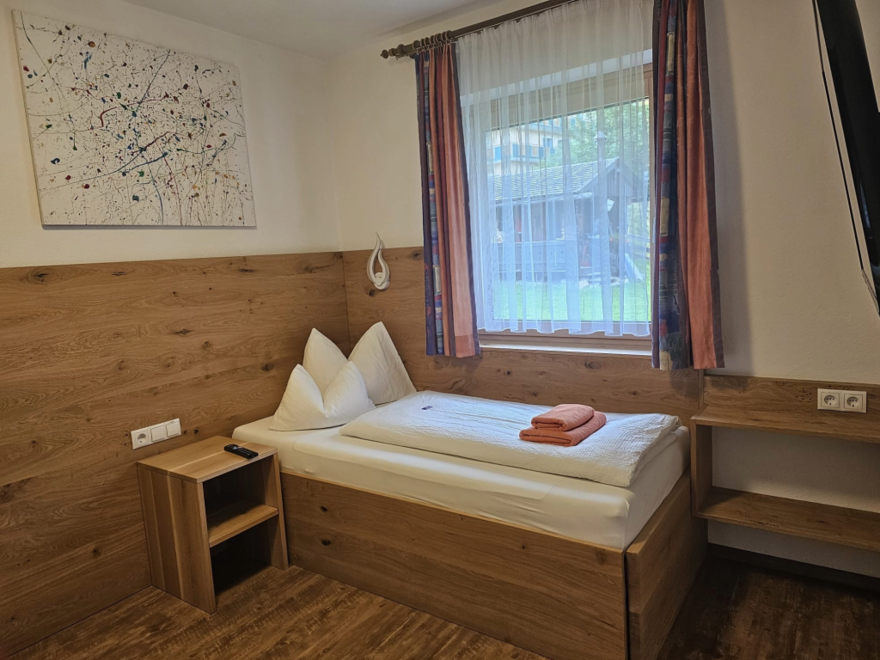 In a wonderful location with a great view, our family-run house offers its guests 20 rooms for up to 47 people (single rooms, double, three- and four-bed rooms, family rooms) that can be individually combined.