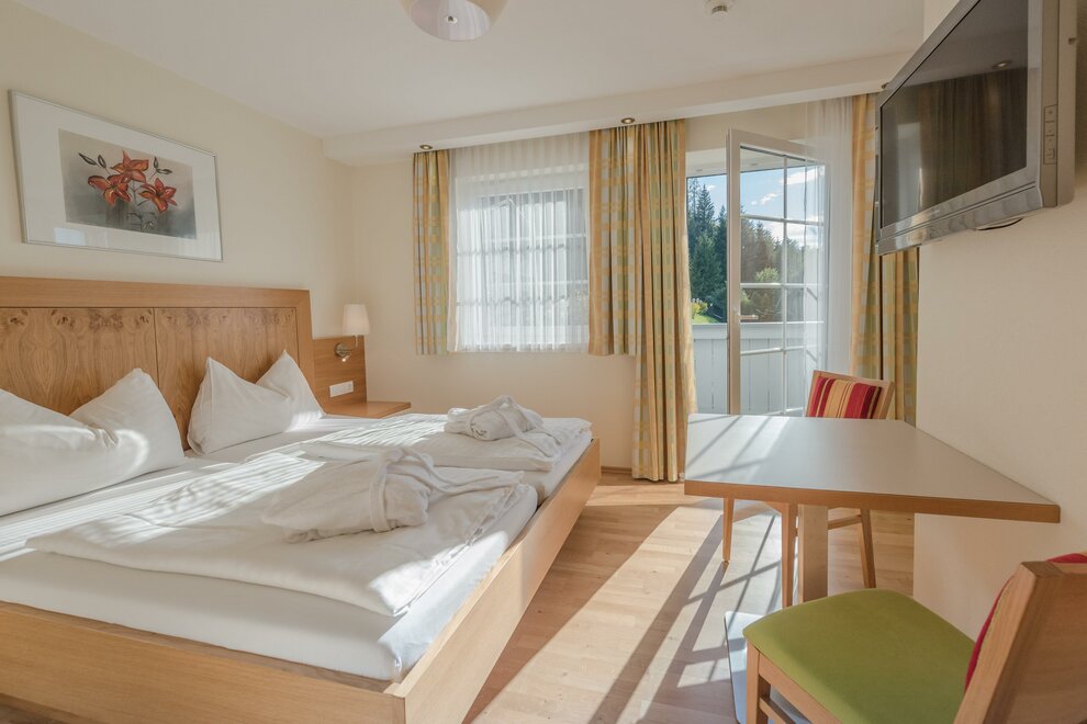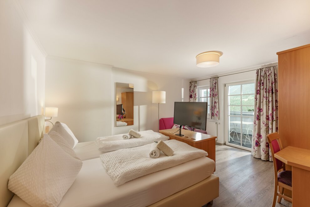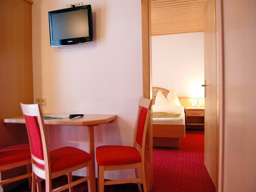 Comfort rooms Standard with shower/WC, hair dryer, free W-Lan, Flat TV with Sat reception, balcony, balcony furniture. One with view to the mountains and the garden (north side) and one with view to the south.