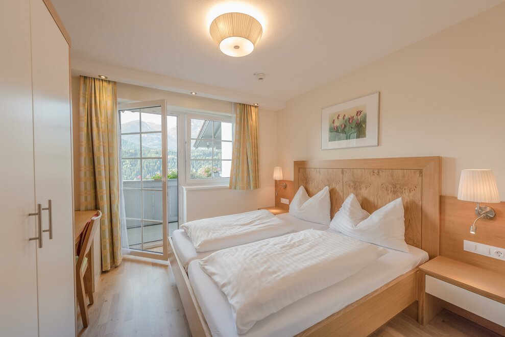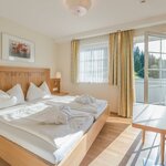 Renovated comfort double room with boxspring bed, flat TV, shower/WC, hairdryer, free Wi-Fi! Balcony with balcony furniture, view into the valley onto the garden and the Dachstein massif! A refrigerator is also available!