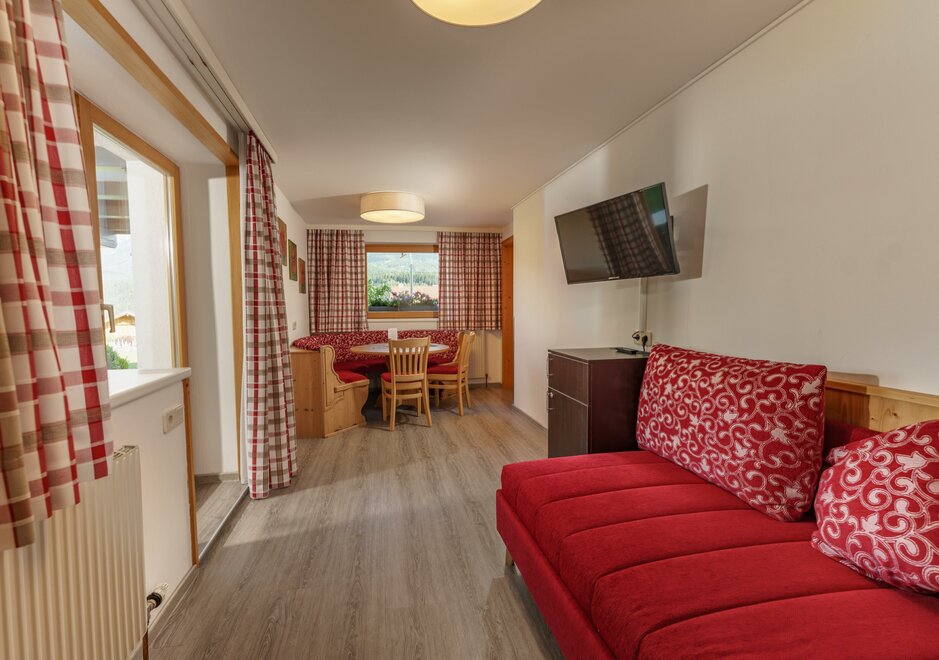 Spacious triple rooms both with balcony, balcony furniture, shower / WC, hairdryer, flat TV with cable reception free W-Lan.With view into the valley.