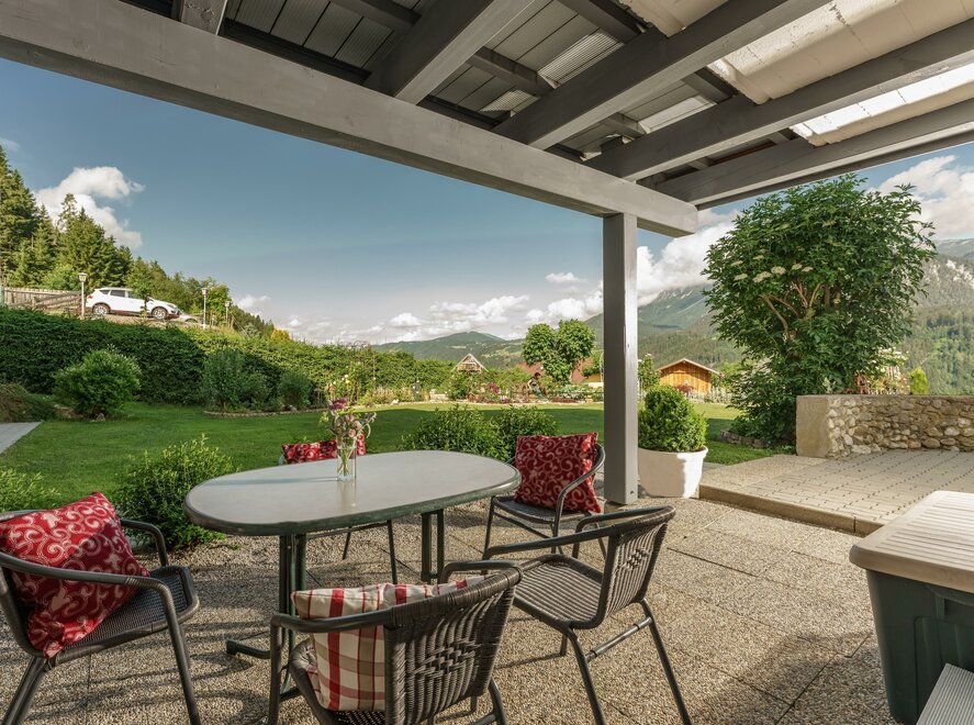 Comfort room with shower / toilet, hair dryer and cable / TV, free Wi-Fi, all rooms with large balcony and with a panoramic view of the beautiful Enns Valley and the Dachstein mountains.