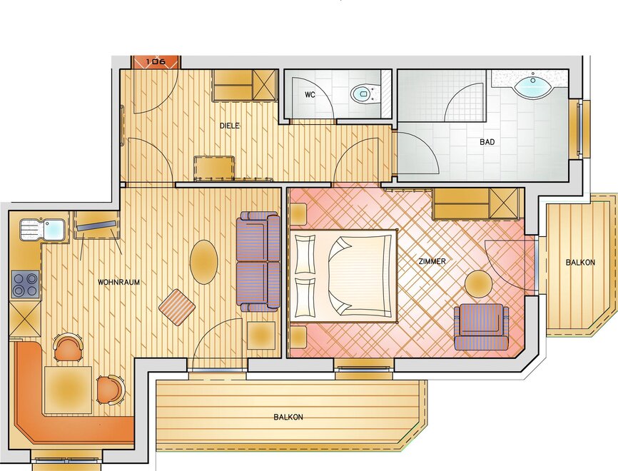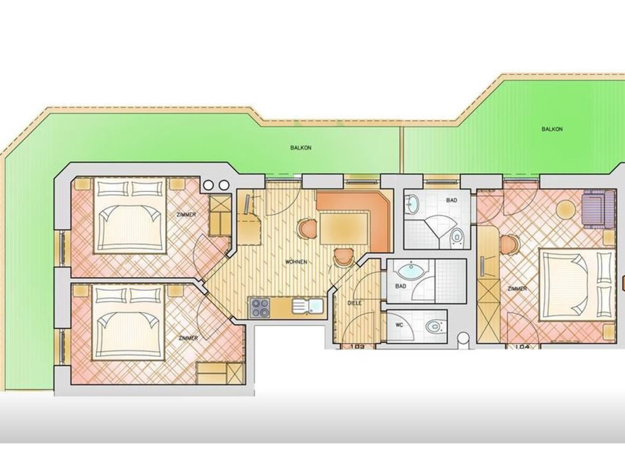 Apartment Type 3 is a combinations of apartment type 2 "standard" for 4 persons and a double room with a total size of 70 m².