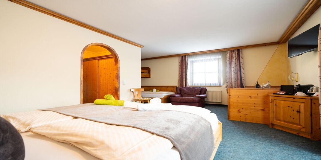 In our large and comfortable family rooms with two bedrooms, each with its own bathroom, you will be able to stay with two, three, four or even five people. What more could you wish for?