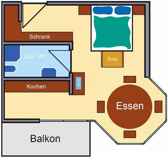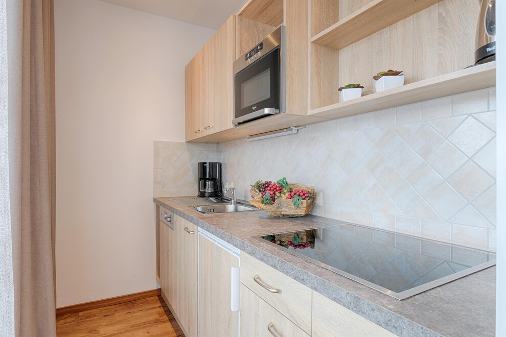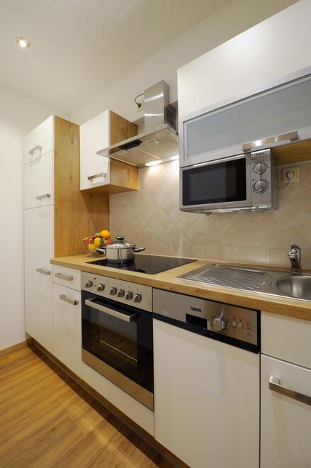combined bedroom/living room, kitchenette, bed linen available, furniture suite, oven, toaster, microwave, smoke detector, essentials (towels, bed linen, soap, toilet tissue), TV, hairdryer, kettle, safe, terrace, freezer compartment, radio, WiFi, dishes available, towels available, balcony furniture, electric stove, telephone, pets permitted on request, non-smoking room/apt., refrigerator, coffeemaker, socket close to bed, dishwasher, cable TV, open foot-end of bed