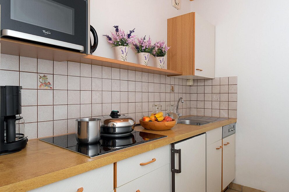 kitchenette (ceramic hob, dishwasher, filter coffee maker, kettle, grill/toaster, microwave, fridge with freezer compartment)