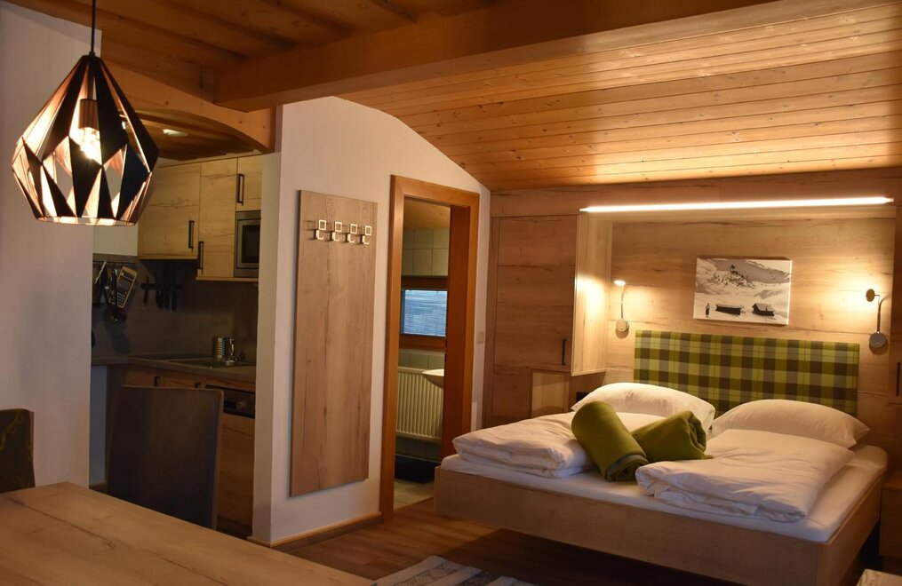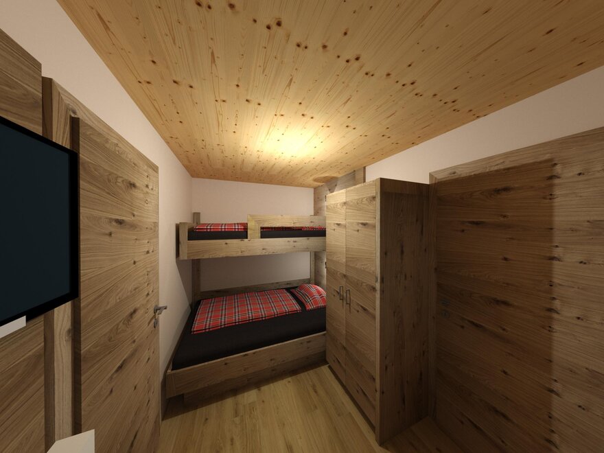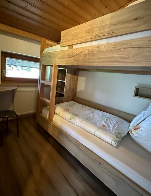 An family apartment with combined bed and- and living room for the adults and a second room with a bunk bed for the kids.