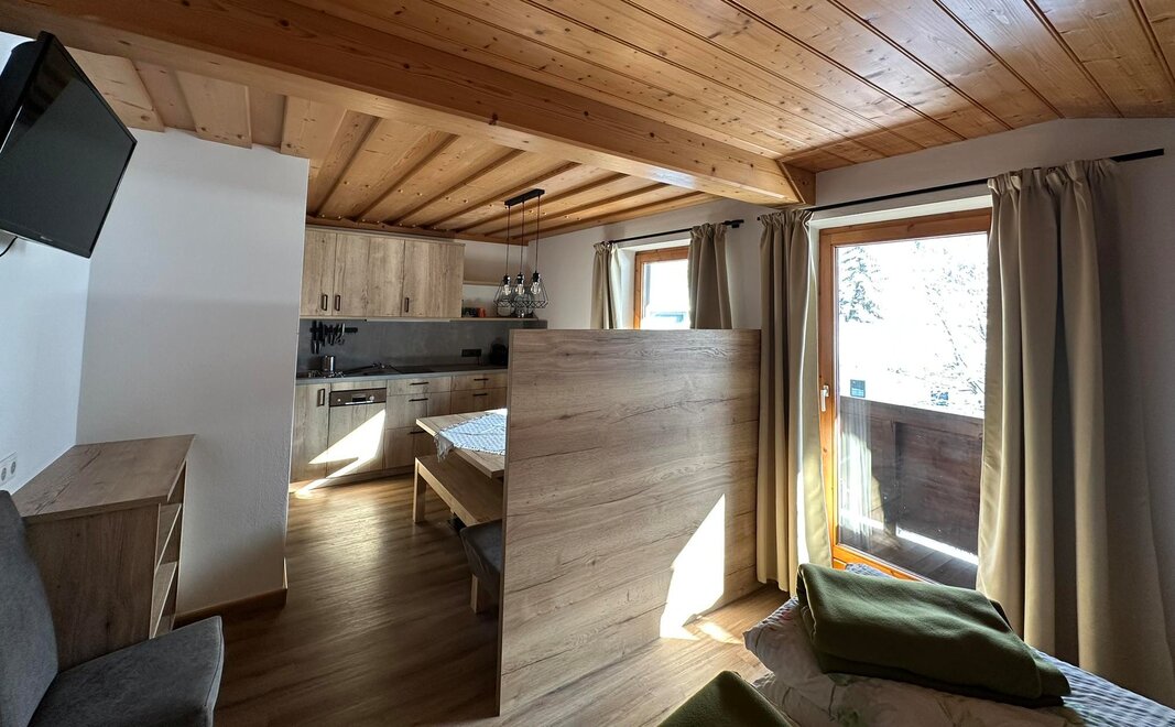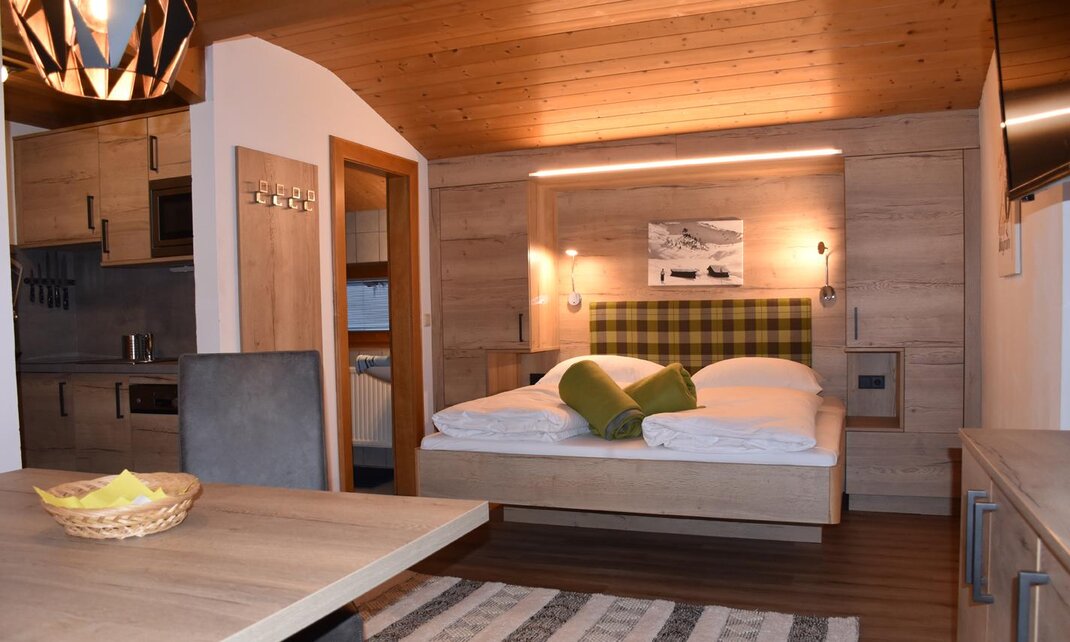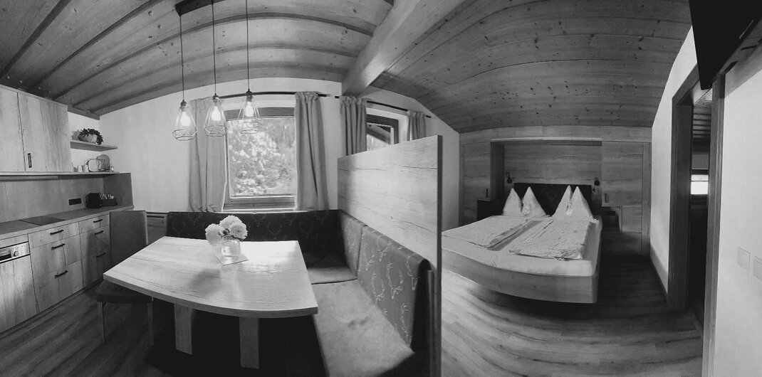 An family-apartment with combined bed and- and living room for the adults and a second room (bunk bed) with a extra bathroom.
