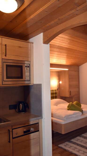 combined bedroom/living room, coffeemaker, furniture suite, cooking possibilities, balcony (in some rooms), dishes available, refrigerator, microwave, bed linen available, kettle, family room/apt., TV, WiFi, dishwasher, freezer compartment, pets permitted on request