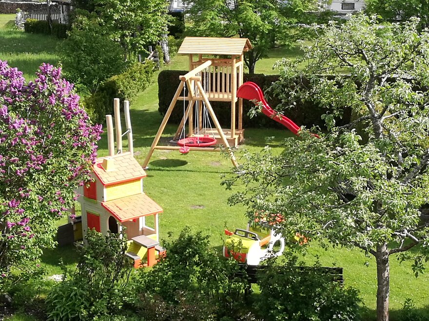 Our family-friendly house is set in a sunny and quiet location, 800 meters from the village center. We provide large rooms with private facilities for two to four people with hairdryer, safe, TV and radio. Some of them have a balcony. We can offer you a large garden with barbeque grill, playground, table tennis, trampoline. Moreover, a lawn to romp around and a large swimming pool. Hiking and cycle paths depart from our doorstep.