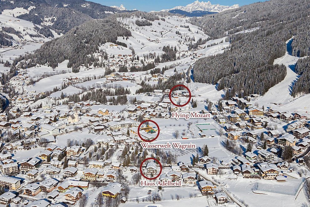 You will find our Haus Adelheid directly at Kirchboden, across from the parking lot of Wasserwelt Wagrain.