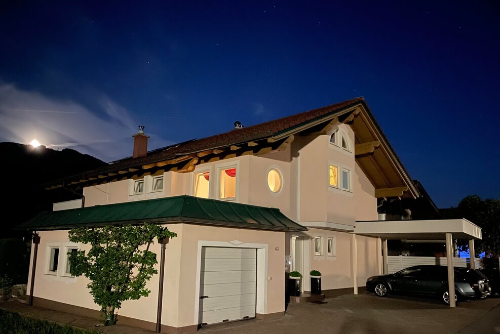 You leave the "Katschbergbundesstraße (B99)" at "Radstadt West" and drive directon center. After about 500m at the post office turn to the right and drive down the hill ("Moosbühel") over the level-crossing until the end of the street. Now turn to the right into the "Simonystraße" and the next to the right into the "Ennsweg" past the football ground and then you see our house on the left side (number 43).