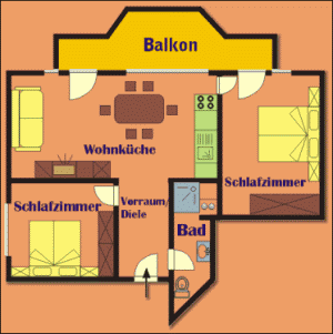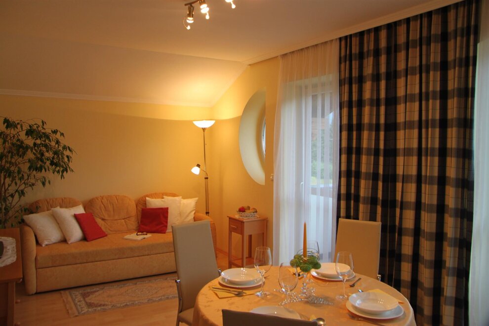 Awaiting you is a 50 m2, light and friendly, as well as tastefully furnished holiday apartment for 2-5 people with 2 bedrooms, living room/kitchen, entrance hall, cable TV, WLAN and big, south-facing terrace. Our own parking area, small-child amenities and room for drying boots complete the picture.