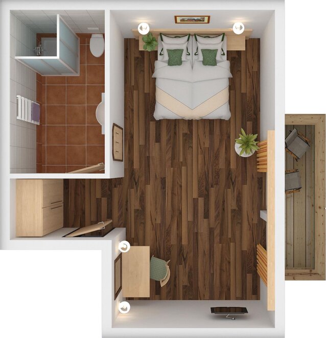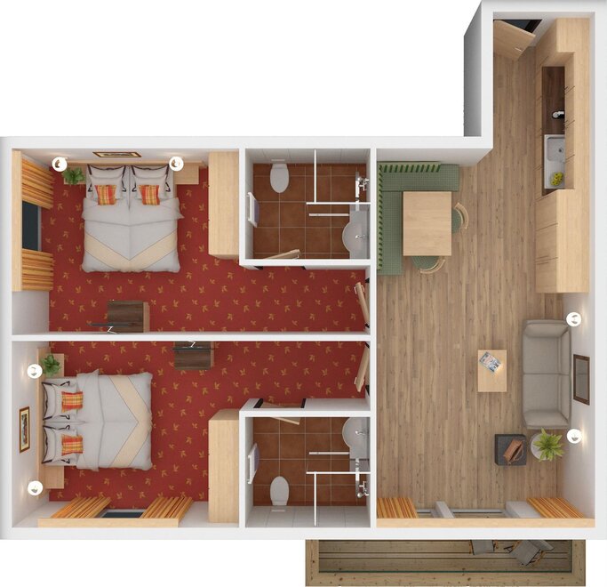 Hotel suite C with 2 bedrooms, no self-catering, final cleaning € 40