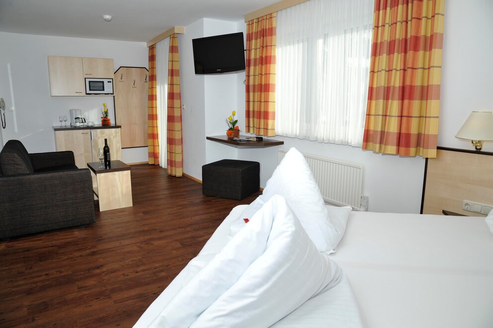 Feel at home in our comfortably furnished rooms and suites (suitable for 2 to 6 persons) with kitchenette, living/bedroom, shower/WC, hairdryer, make-up mirror, cable TV, telephone and internet.