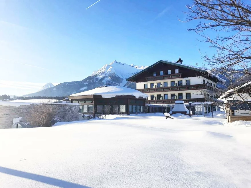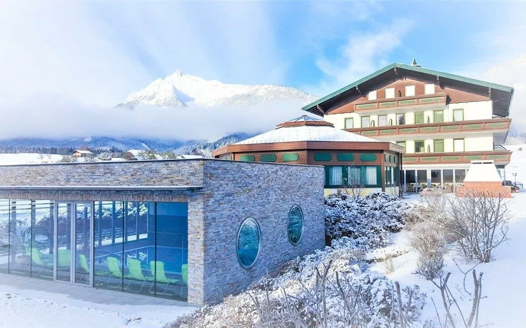 On a high of 800 meters in the health Resort of Mitterberg is the beautiful Hotel Berghof, surrounded by green fields and in the background rises imposingly the Grimming.