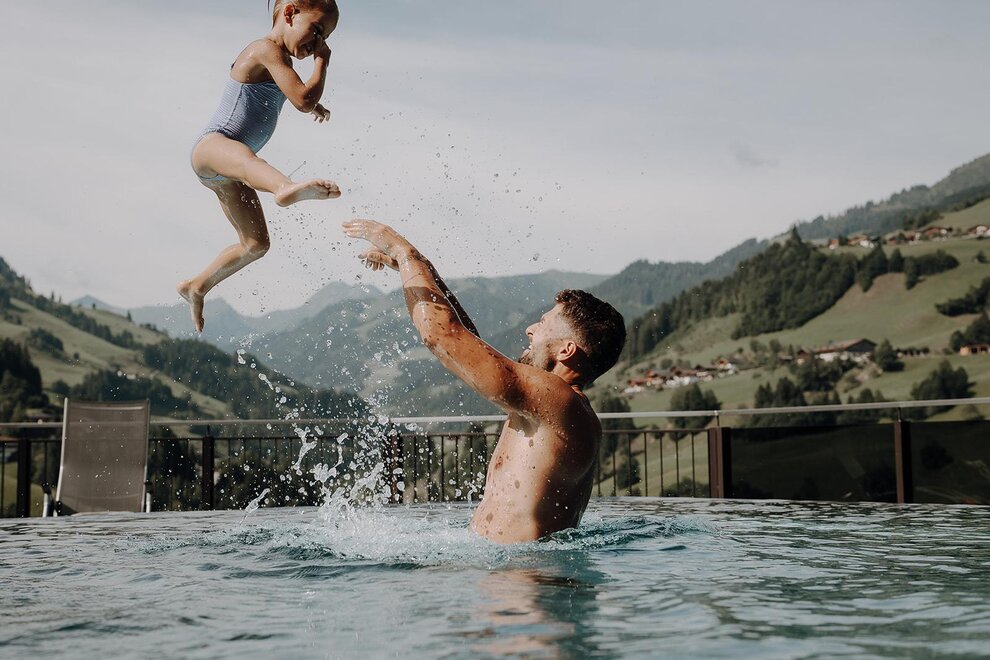In summer our heated swimming pool brings the fun for young and old. In winter is the stop for the skibus situaded in front of our pension.