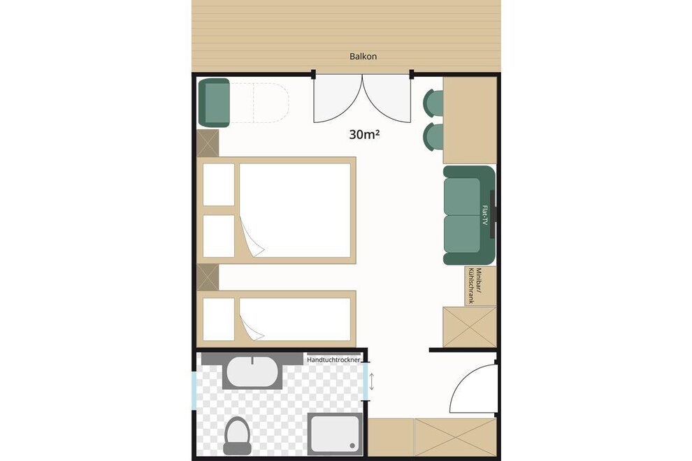 shower/WC, radio, flat-screen TV, safe, refrigerator, free WiFi, balcony