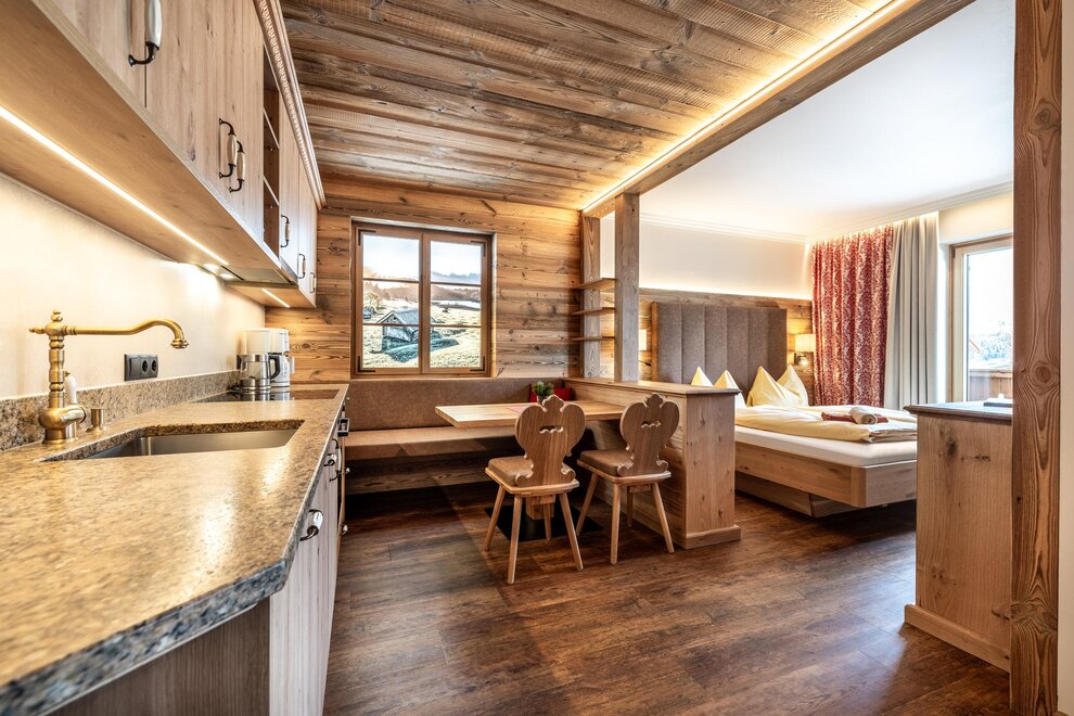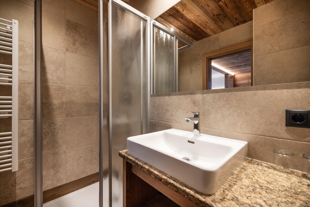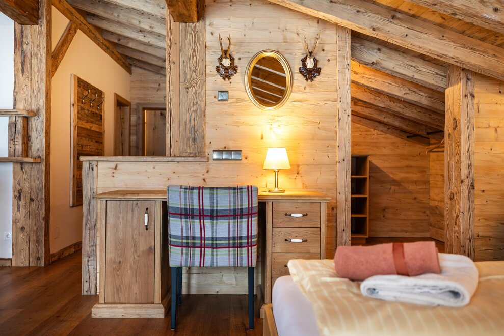 The new courtyard chalet extends over two floors and is perfect for families. A modern gallery is installed on the upper floor. From the terrace you have direct access to the garden.