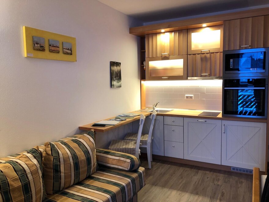 Apartment in the Kollerhof with a bedroom and a bed-sitting room, fully equipped kitchen, bathroom/WC, living room with dining area for 4 people.