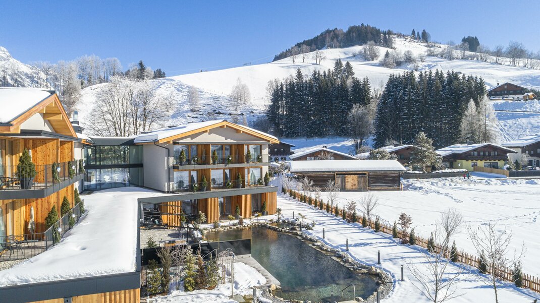 The excellent location in the middle of Maria Alm am Hochkönig is only a few steps away from the nearest lift and has a ski and hiking bus stop in the immediate vicinity. Quiet and with a large garden, you have a wonderful panoramic view of the peaks of the Hochkönig area not only from the natural pool and restaurant area, but also from every junior suite and superior double room. The long, regional gourmet brunch, which you can also enjoy on the terrace in summer before jumping into the natural pool or relaxing in the SPA area with panoramic sauna and infrared cabin, lets you enjoy your vacation a little more. Casual, relaxed and carefree is the atmosphere at Hotel MorgenZeit.