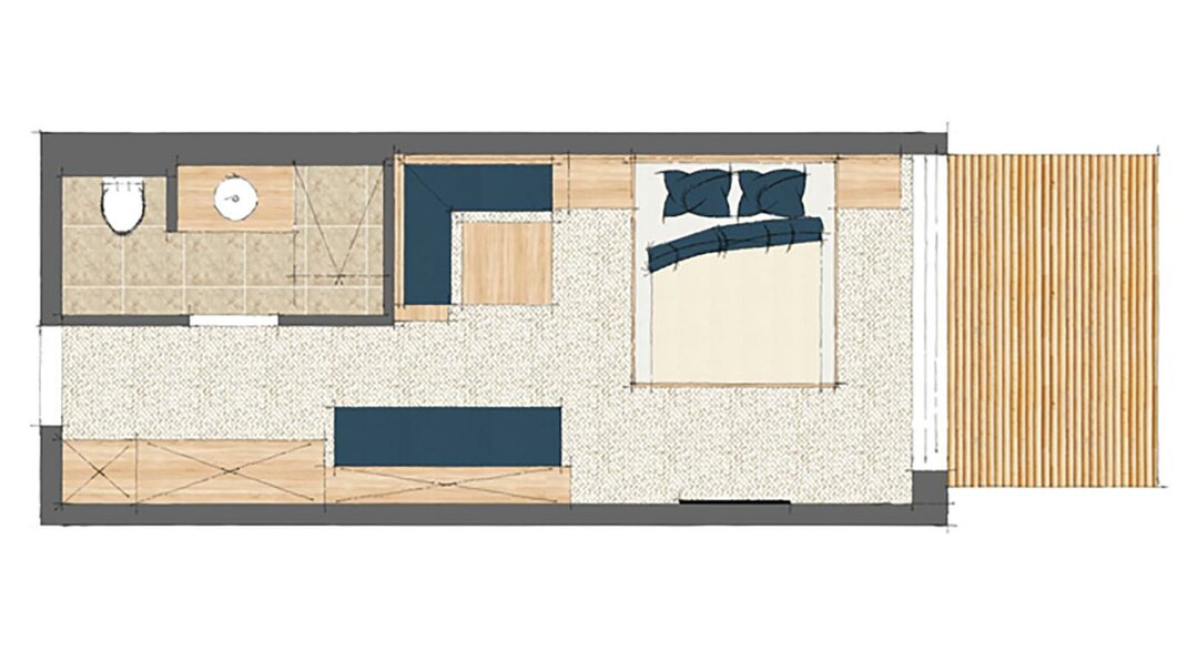 Type 1: Two bedrooms with one double bed and a fold-out extra bed each. One of the room does not have a window and one of the extra beds is a short bed (only for children).