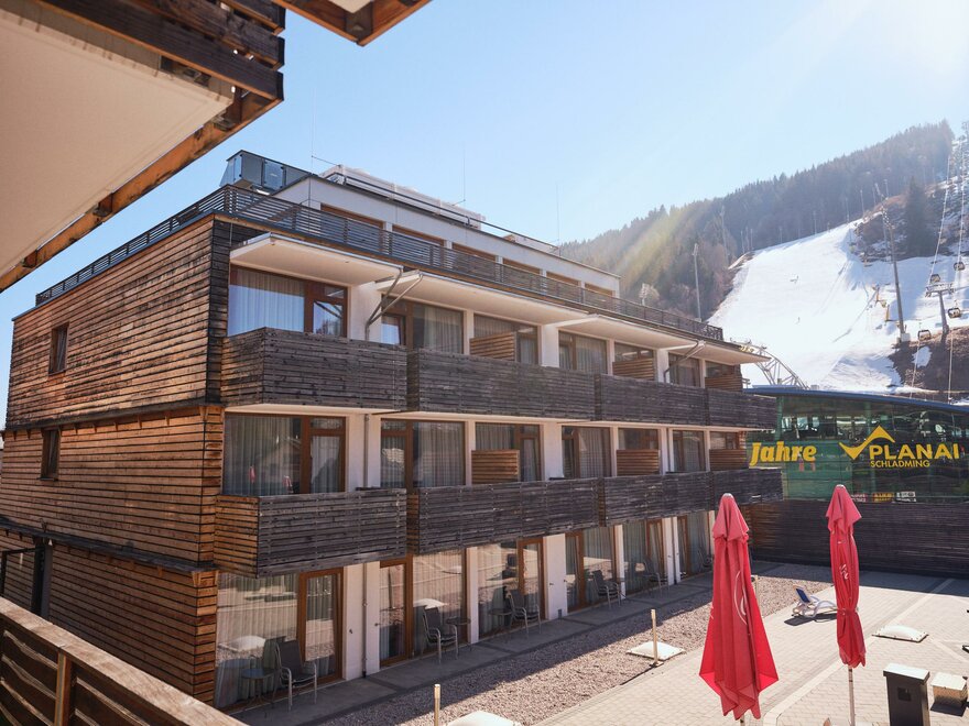 The cable cars are literally on your doorstep - only 10 meters from the hotel entrance the Planai cable car will take you up the mountain and into the middle of the skiing, hiking and biking paradise that surrounds Schladming. The bus also stops right in front of the hotel and takes you to all the attractions of the region. Only about 100 meters further you’ll find the pedestrian zone of Schladming, with its cozy cafes, countless shops and great nightlife. A sports shop with bike- and ski rental is situated in the other side of the hotel, and a supermarket is located in the same building as the hotel.