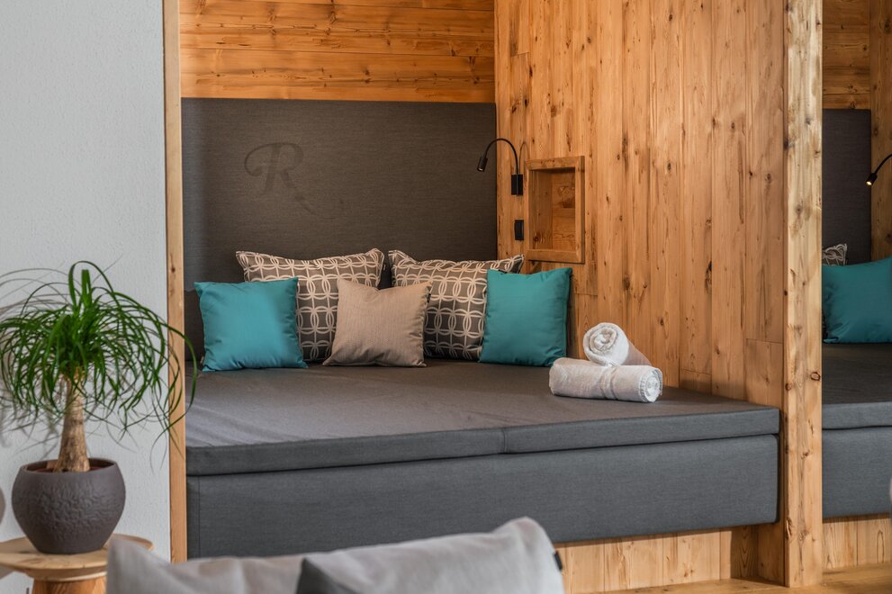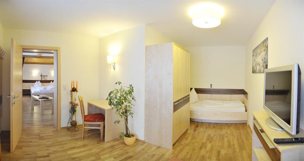 The double rooms south are furnished with modern materials like loden and wood. Cozy double bed with comfortable mattresses, desk, couch, cable TV, radio, nice bathroom with shower and toilet, balcony.