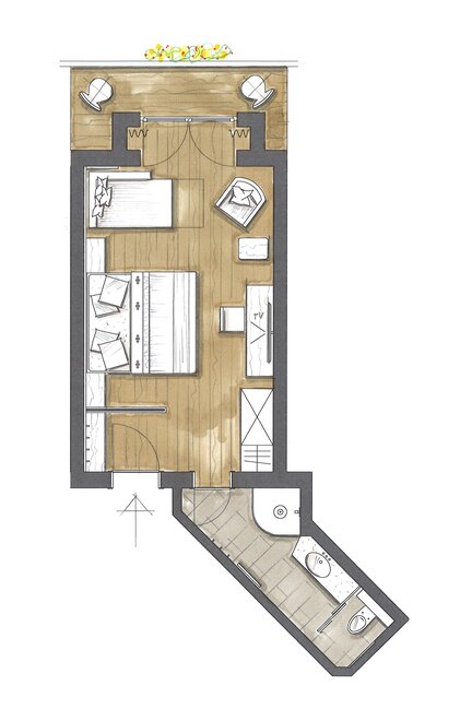 Double room Typ "Tauern" with shower or bath tube, balcony, TV, Safe and telephone.