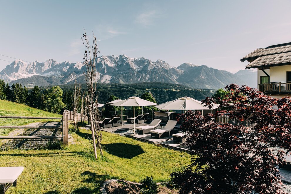 On the sunny plateau of Rohrmoos, quiet, a lot of space around the hotel.