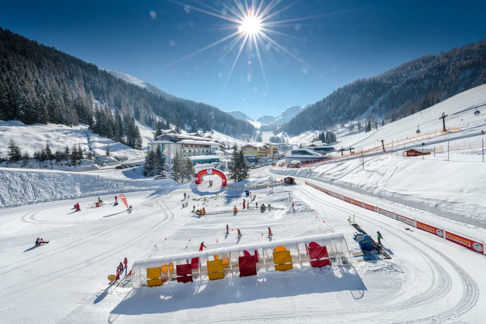 Next to it there are two sports shops to rent the ski equipment, the après ski bar Zauchensee and the Almbar with bowling.