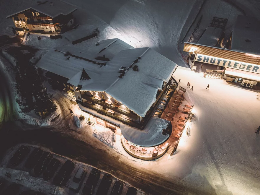 - right at the ski-bus/ hiking-bus/ bus stop