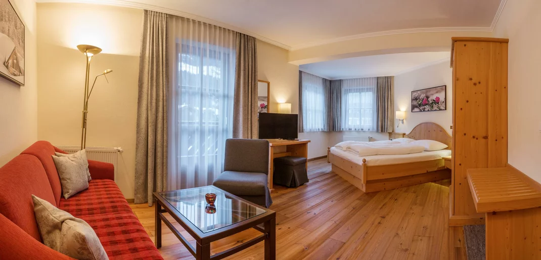 Comfortably furnished double room with seating area,