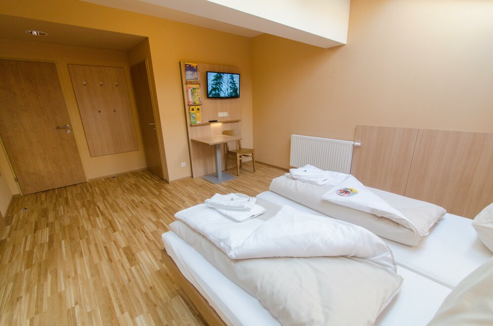 Double or single beds, functional and modern furniture, private bathroom with shower/WC