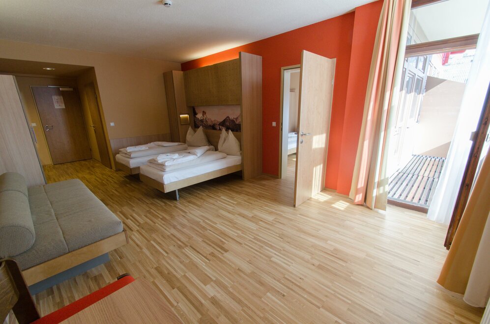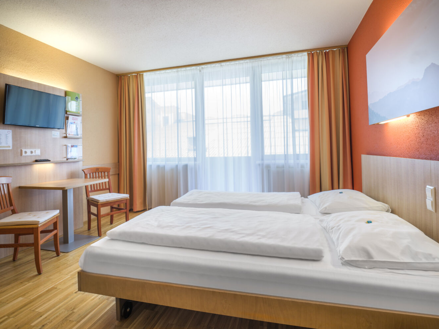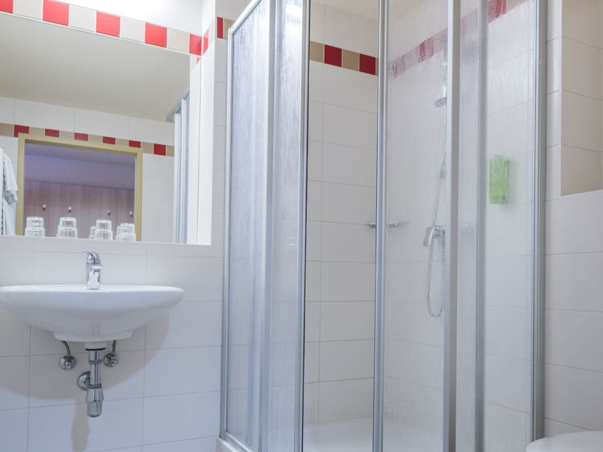 Modern, bright and friendly furnished room with balcony, comfortable double, single or box-spring beds, shower, toilet and hairdryer, TV, free W- Lan, safe. A baby travel cot in the room is possible on request.