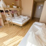 Double and single beds, functional and modern furniture, private bathroom with shower/WC