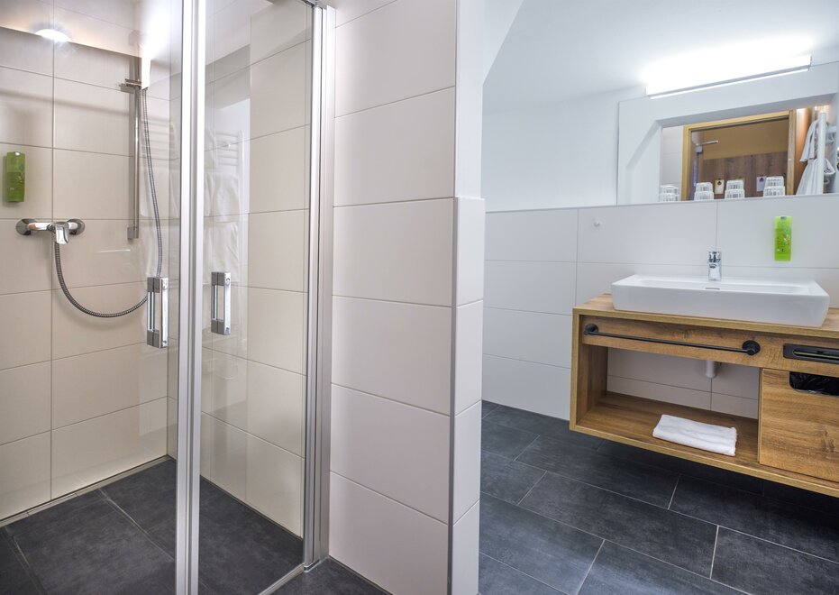 Single bed, light and modern furniture, private bathroom with shower/WC