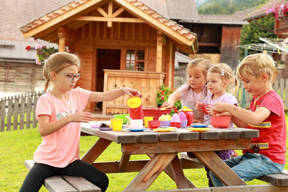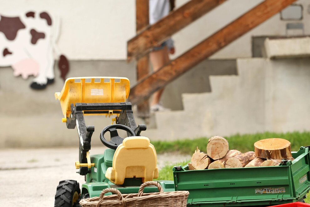 And the children? They jet around with the go-karts and pedal tractors, play in the children's playhouse, have a table tennis match or explore the nature on the meadows and woods behind the farm...