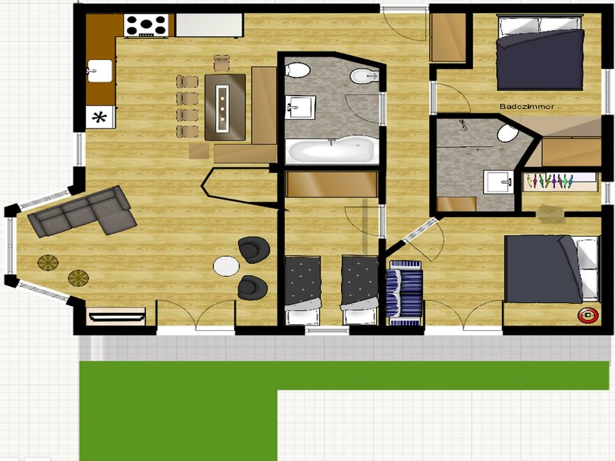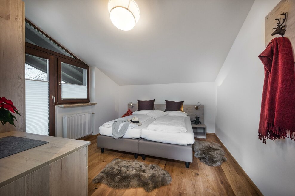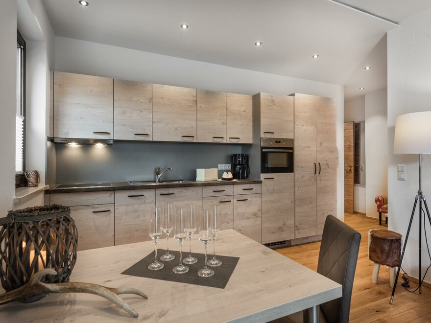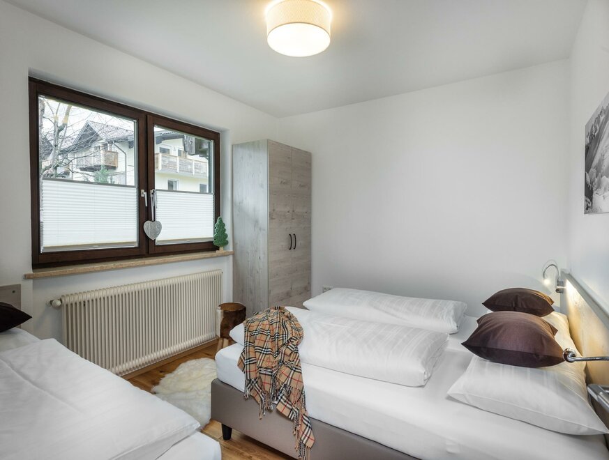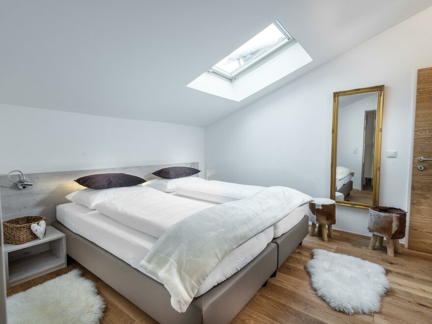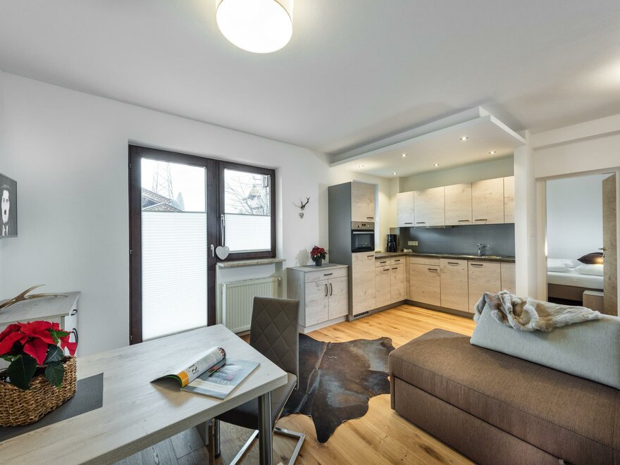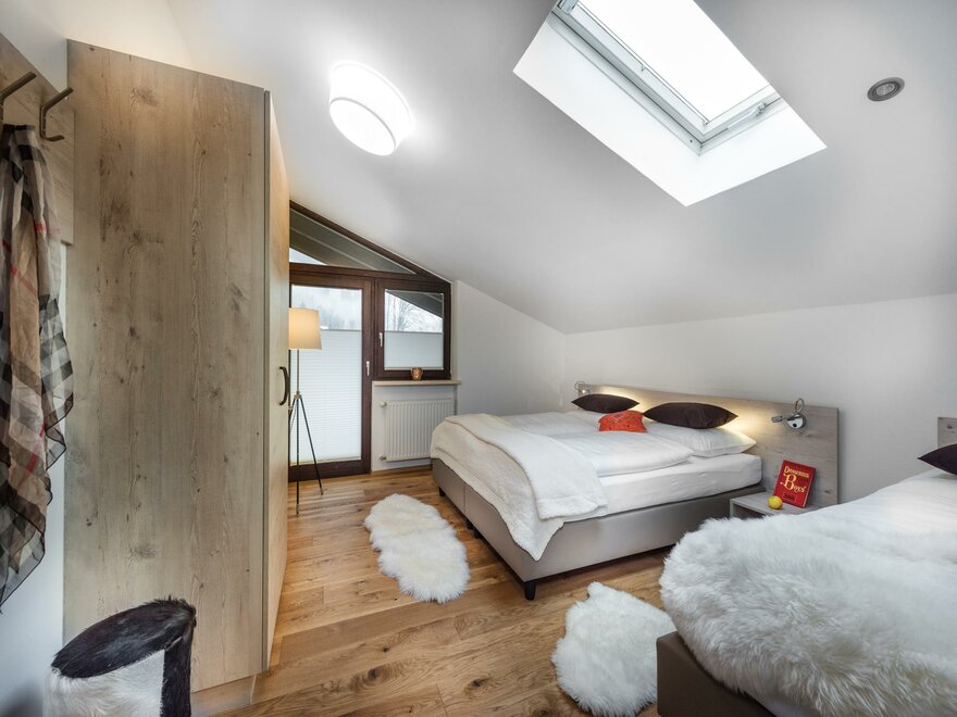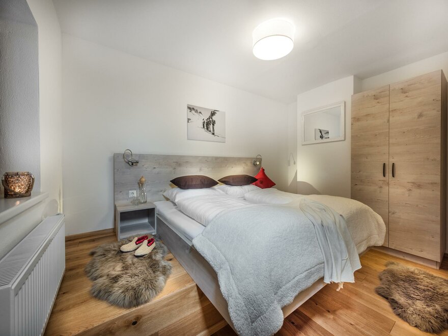Our big holiday apartment with 3 bedrooms and 2 baths with WC offers space for 7 to 9 persons. A big terrace with wonderful views over the mountainside invites you to stay. There is also a big entrance area as well as a living- and dining area with connected kitchen. This holiday appartment ist equipped with furniture out of arolla (swiss) pine original and typical for the country - a made-to-measure item of the local joiner. High-speed Wifi and Flat-TV with internet connection are available.