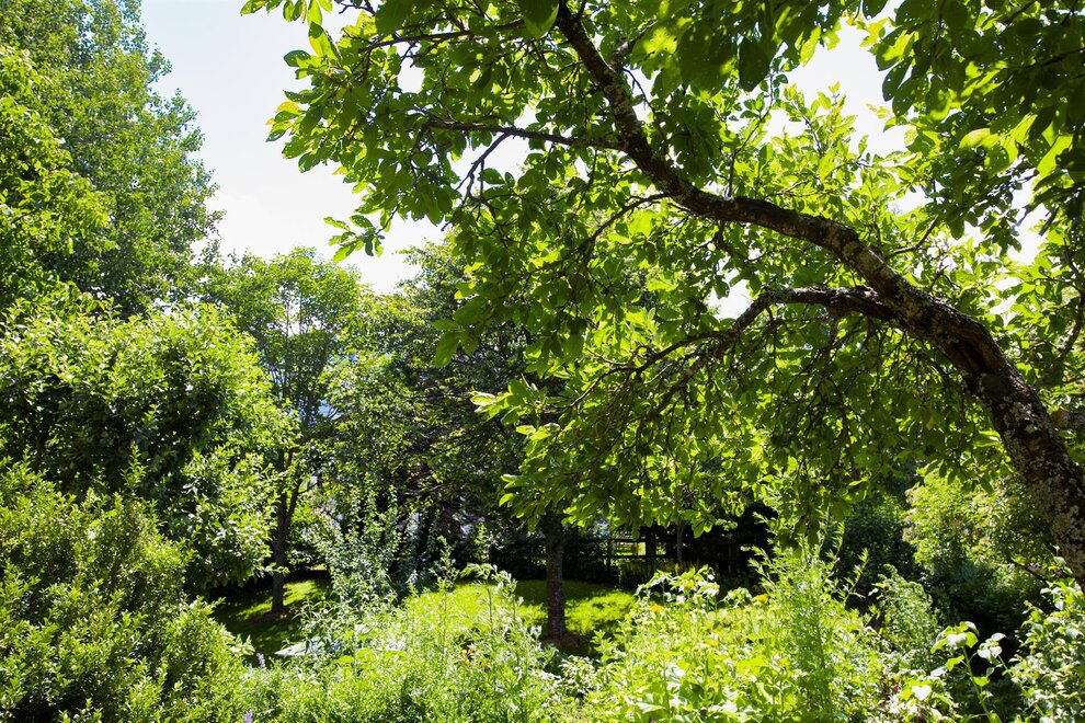 The hallway leads to an open living room with comfortable seating area, leather sofa, TV and HiFi. From the south-facing balcony, you can enjoy beautiful views of the garden and the mountains.