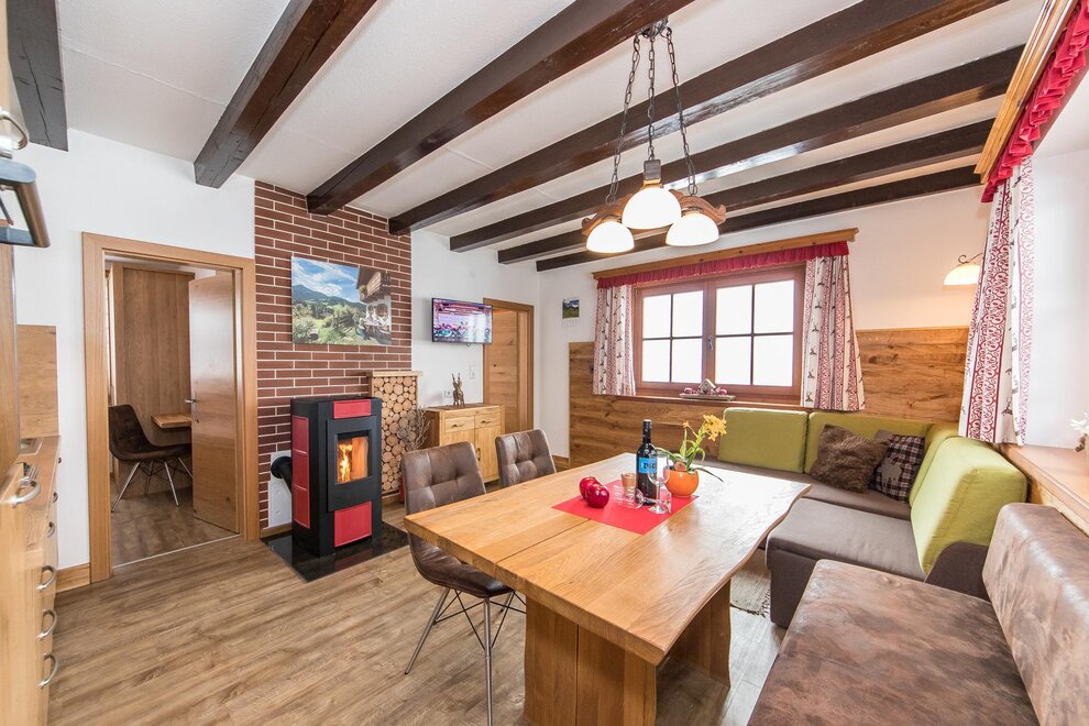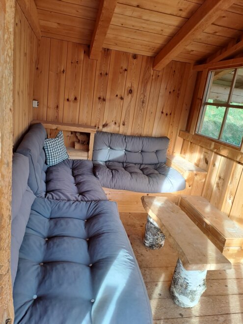 Eckwald holiday cabin,2 bedrooms, cozy kitchen-living room with pellet stove, dream location, 250 m above the farm, fully equipped kitchen, shower and toilet, sun terrace,on the edge of the forest, view - close to the ski slopes, romantic cabin flair