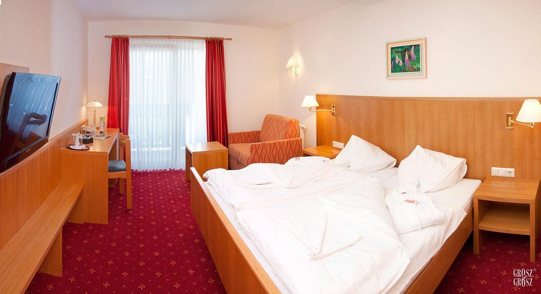 The spacious double rooms comfort are suitable for 2-3 persons. They are available both north- and east-facing. Facilities: seating, cable TV, flat screen, radio, telephone, hotel safe, shower or bath and WC, hairdryer, make-up mirror, heated towel dryer, bathrobe, minibar, balcony, free WiFi