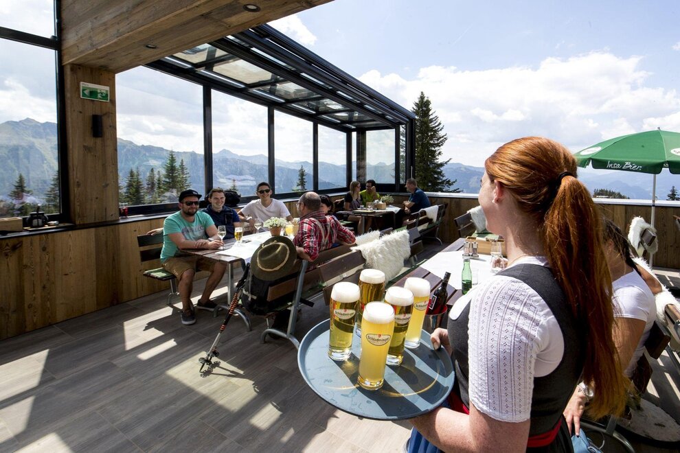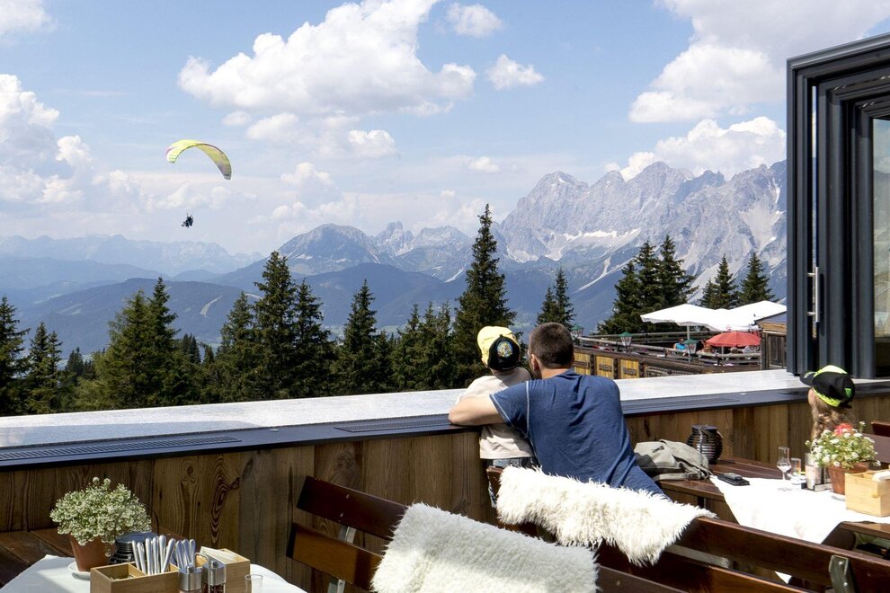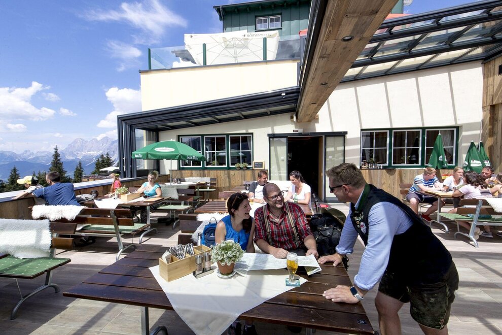 Our mountain restaurant offers hot meals all day long and our summer liqueur accompanies you with national and international wine and beer specialties. From the panorama terrace and our new winter garden, you are able to enjoy fantastic panoramic views of the Dachstein, Ennstal valley and Niedere Tauern mountains.
