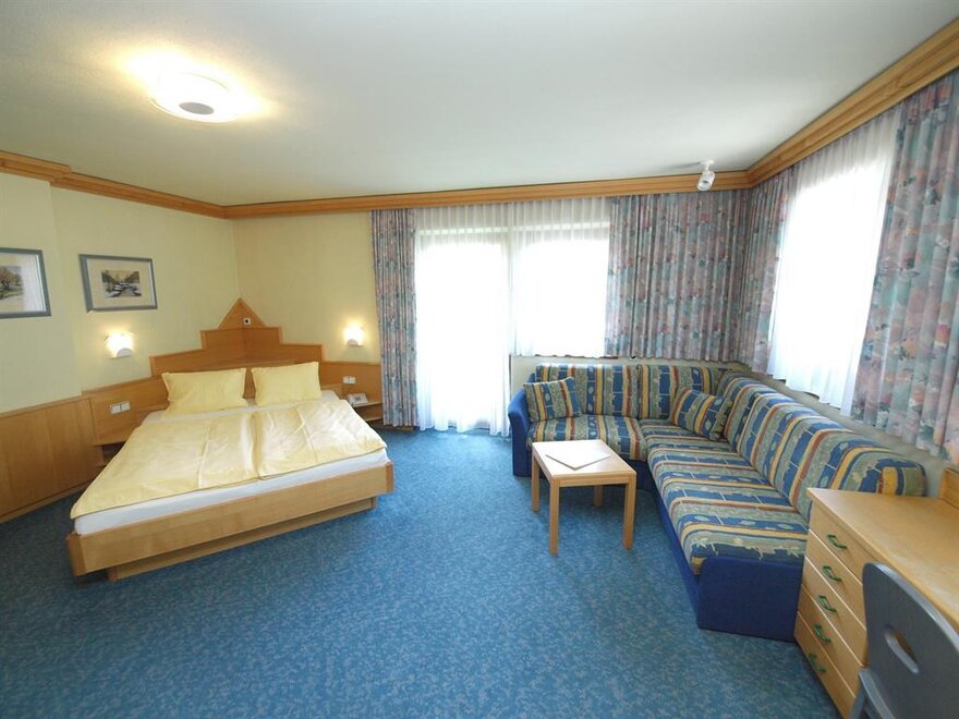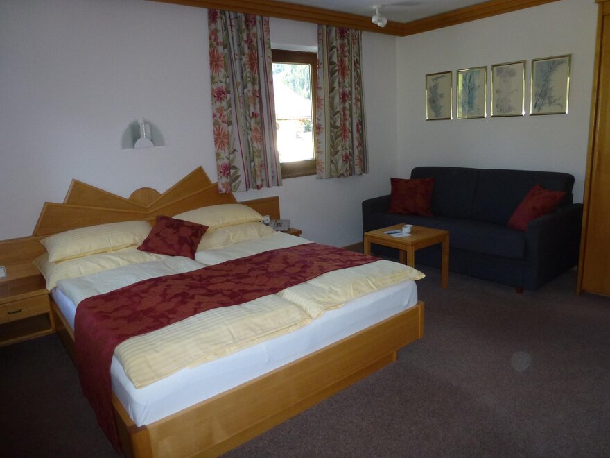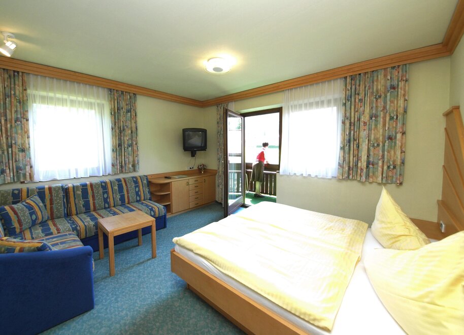Family-room type D - large double-room mit cosily lounge, a bedroom - separated by a slidling door - for one person, shower/wc, balcony with a stunning view to our wonderful panorama. ca. 32m². Please ask for a discount for children!!