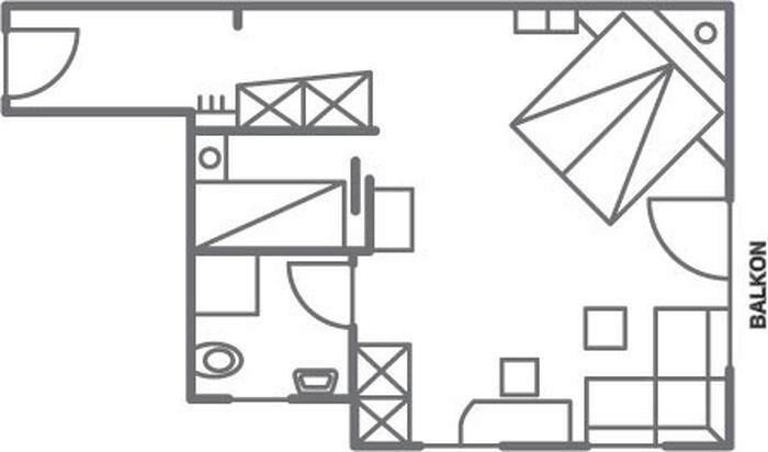 Double - room type C - generous arranged rooms with cosily seating accomodation. They also spend place for 3 or 4 persons, they are with shower/wc and partially with balcony ca. 23m².