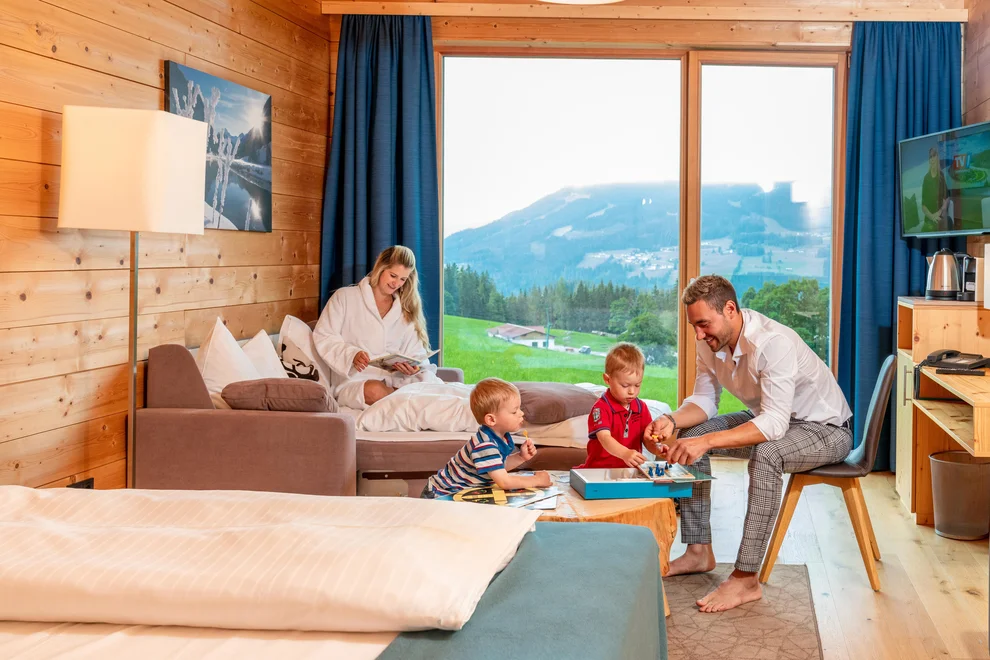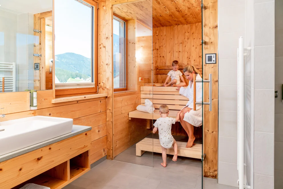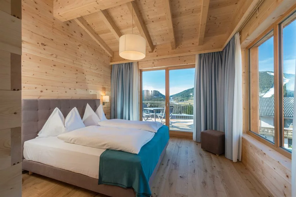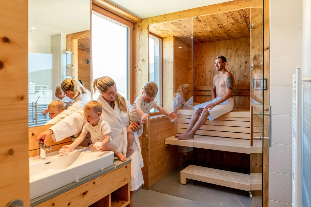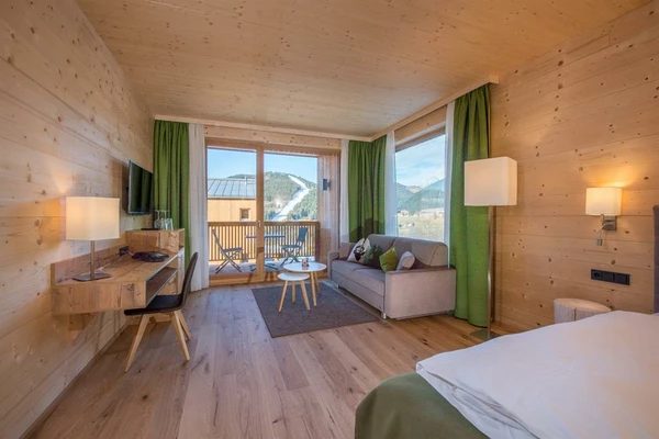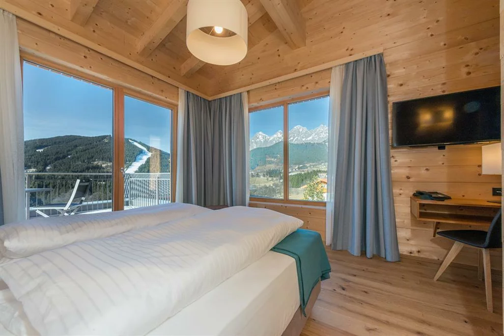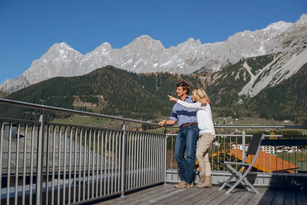 Each apartment is equipped with its own, about 4m ² sauna and fireplace. In addition, we offer spacious double rooms with sofa bed (38m ²) with great breakfast buffet, spacious family suites with 2 bedrooms (102m ²!),a penthouse (116m ²) and a wellness oasis with Finnish sauna, relaxation area, vital corner, fitness room and massage offer! Behind the hotel you practice in the winter at the dragon lifts or at the 3km distant ski lifts on Rittisberg. The four-mountain ski area Vier Berge Skischaukel with Reiteralm, Hochwurzen, Planai and Hauser Kaibling is 20 minutes by car or you can take the free ski buses of the region! The ski areas Flachau, Filzmoos and Obertauern are also within easy reach. The entry into the cross country slopes Tritscherhöhenloipe or the Herold round or in the numerous winter hiking trails takes place in a few walking meters directly from the hotel! In summer you start directly from the hotel to hikes around the Kulmberg or Rittisberg or into the Dachstein region. With the included Schladming-Dachstein Summercard you can travel free of charge with the hiking buses and numerous cable cars!