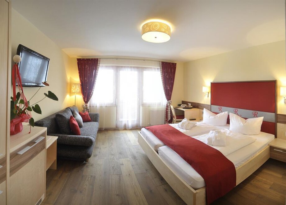 The double rooms south are furnished with modern materials like loden and wood. Cozy double bed with comfortable mattresses, desk, couch, cable TV, radio, nice bathroom with shower and toilet, balcony.