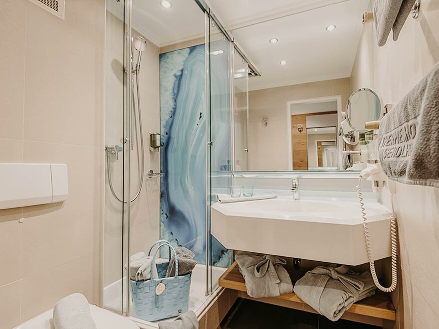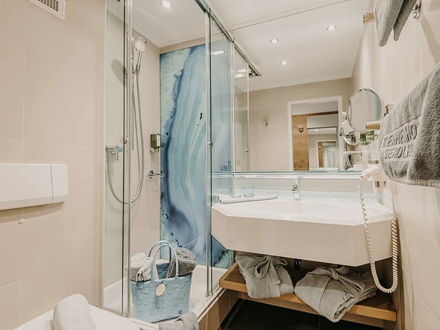 Bathroom with shower & toilet (on request also available with bathtub)