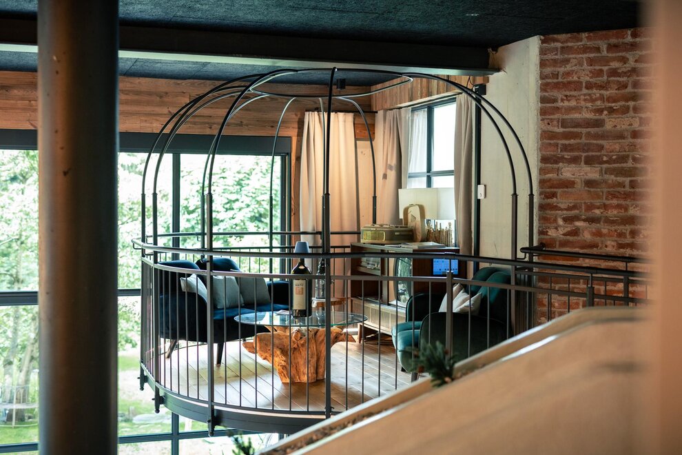 Hanging chair & coffee table (not available in every room)
