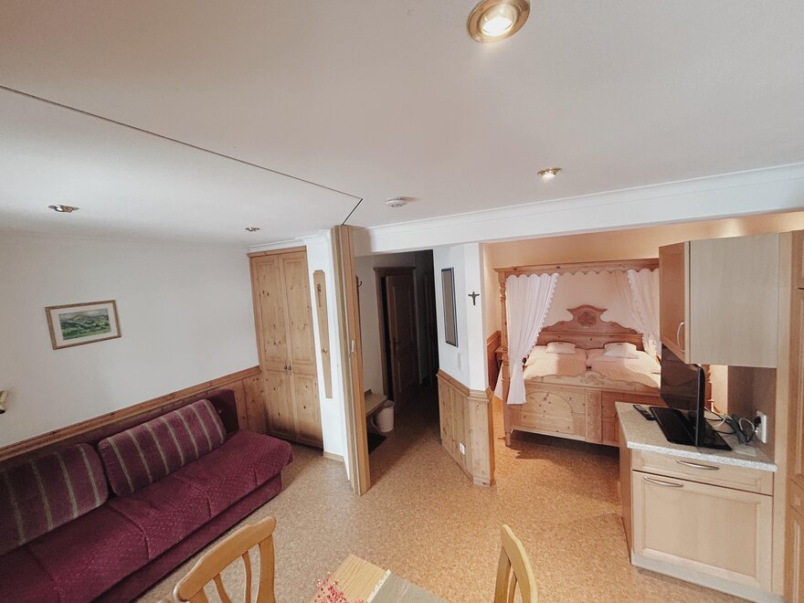 With a beautiful bedroom and four-poster bed, shower/WC, satellite TV, radio and couch, on request also with cot/crib, second bedroom with king size bed, 2 sofa-beds, kitchenRoom/apartment features