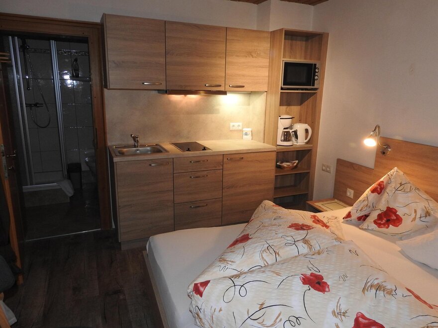 with romantic dooble-room with four-poster bed, sofa-bed with shower and WC, Sat/Tv, Radio for 2-4 Pers.